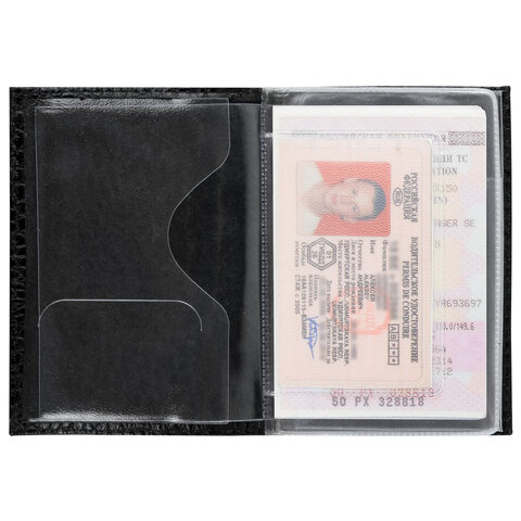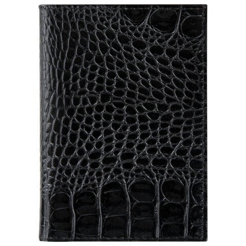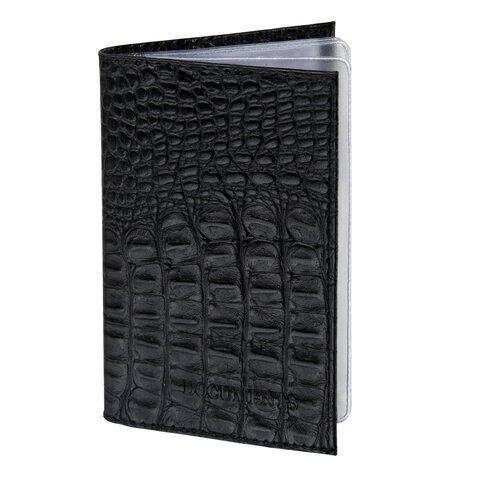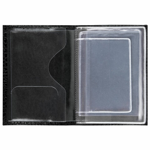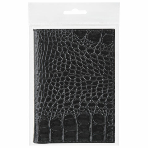 Обложка для автодокументов натуральная кожа кайман, без тиснения, черная, BRAUBERG, 238189