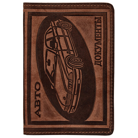 Обложка для автодокументов натуральная кожа краст, машина + "АВТОДОКУМЕНТЫ", коньяк, 238208