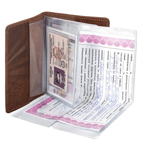Обложка для автодокументов BRAUBERG защищает документы от изнашивания и загрязнения, придает им респектабельный вид.