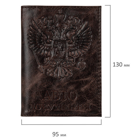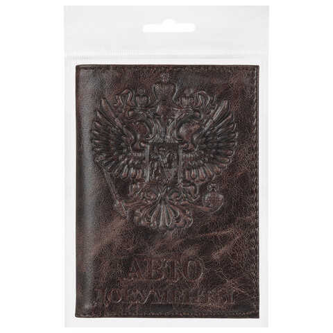 Обложка для автодокументов натуральная кожа пулап, 3D герб + тиснение, темно-коричневая, BRAUBERG, 238195