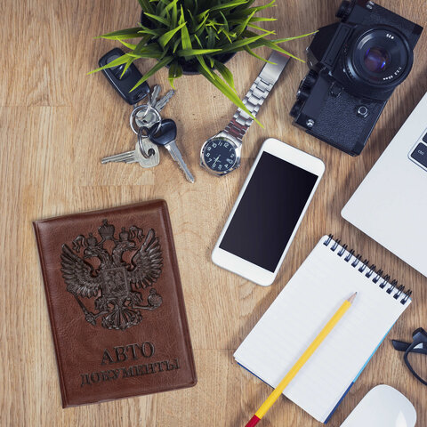 Обложка для автодокументов STAFF, полиуретан под кожу, "АВТОДОКУМЕНТЫ", коричневая, 237598