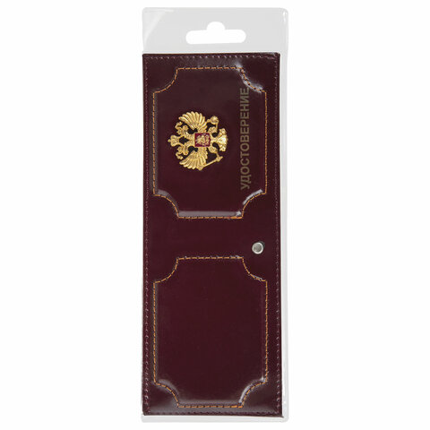 Обложка для удостоверения натуральная кожа шик, 3D герб + тиснение, темно-бордовая, BRAUBERG, 238199