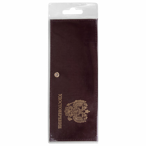 Обложка для удостоверения натуральная кожа шик гладкий, "Герб", темно-бордовая, STAFF "Profit", 237188