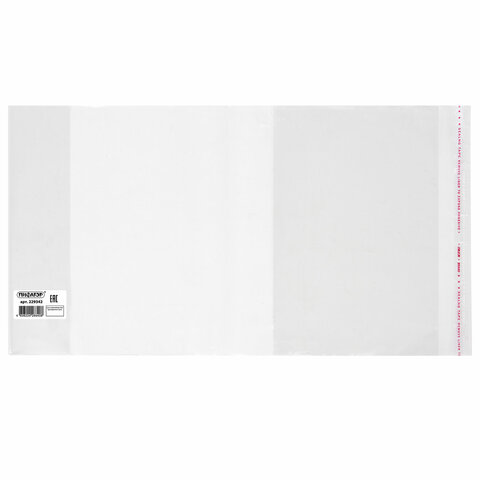 Обложка ПП со штрихкодом для тетрадей и дневников, КЛЕЙКИЙ КРАЙ, 80 мкм, 210х380 мм, универсальная, прозрачная, ПИФАГОР, 229342