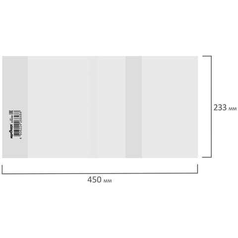 Обложка ПП со штрихкодом для учебников МАЛОГО ФОРМАТА, ПЛОТНАЯ, 100 мкм, 233х450 мм, универсальная, прозрачная, ЮНЛАНДИЯ, 229350