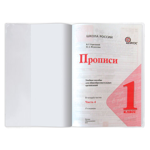 Обложка ПВХ со штрихкодом для прописей Горецкого и рабочих тетрадей, ПЛОТНАЯ, 120 мкм, 243х345 мм, прозрачная, ПИФАГОР, 224836