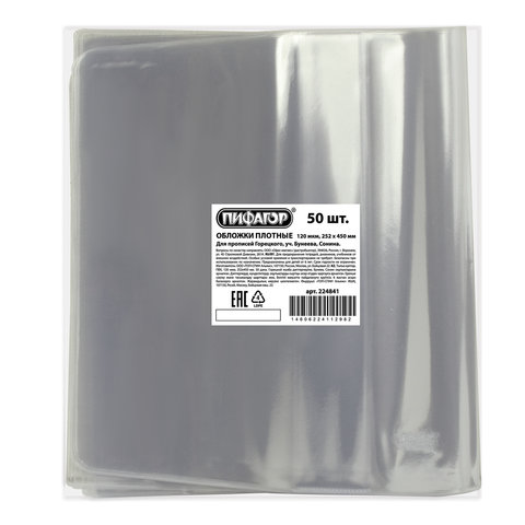 Обложка ПВХ со штрихкодом для прописей Горецкого,уч. Бунеева, Сонина, ПЛОТНАЯ, 120мкм, 252х450мм, универсальная, прозрачная, ПИФАГОР, 224841