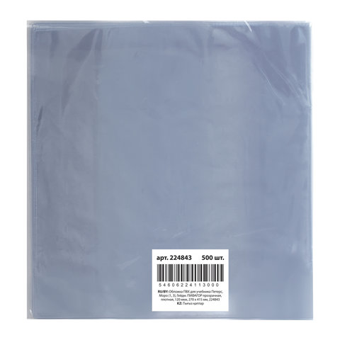 Обложка ПВХ со штрихкодом для учебников Петерсон, Моро, Гейдмана, ПЛОТНАЯ, 120 мкм, 270х415 мм, прозрачная, ПИФАГОР, 224843