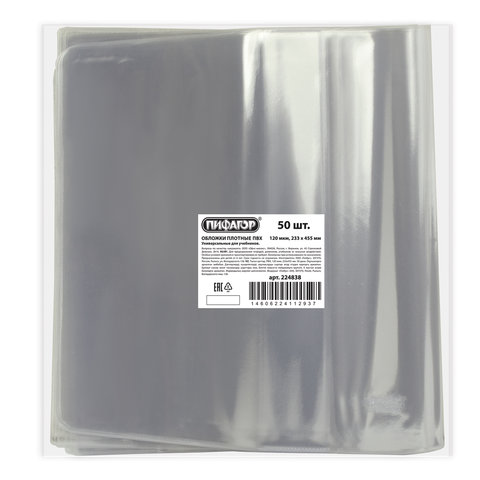 Обложка ПВХ со штрихкодом для учебников МАЛОГО ФОРМАТА, ПЛОТНАЯ, 120 мкм, 233х455 мм, универсальный размер, прозрачная, ПИФАГОР, 224838