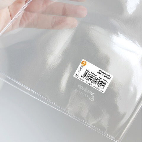 Обложка ПВХ со штрихкодом для тетрадей, ПЛОТНАЯ, 110 мкм, 209х340 мм, прозрачная, ДПС, 1111.1, 1111,1