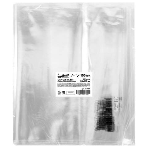 Обложка со штрихкодом ПП для тетрадей и дневников, 60 мкм, 210х350 мм, прозрачная, ЮНЛАНДИЯ, 273980