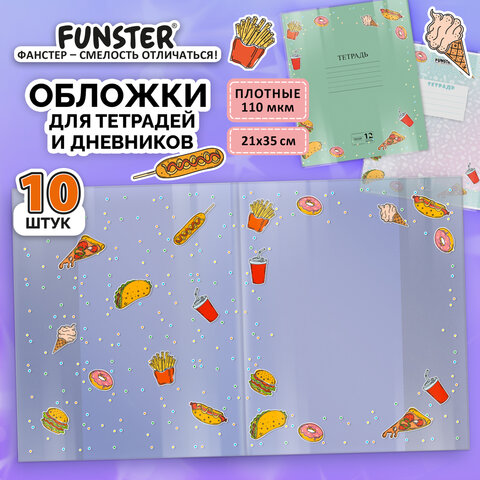 Обложки "FOOD" для тетрадей и дневников, КОМПЛЕКТ 10 шт., ПЛОТНЫЕ, 210х350 мм, 110 мкм, FUNSTER (ФАНСТЕР), 274083