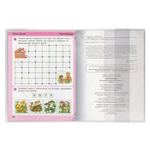 Обложки ПВХ для учебников Петерсон, Моро, Гейдмана, КОМПЛЕКТ 5 шт., ПЛОТНЫЕ, 120 мкм, 270х490 мм, прозрачные, ПИФАГОР,224846