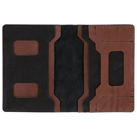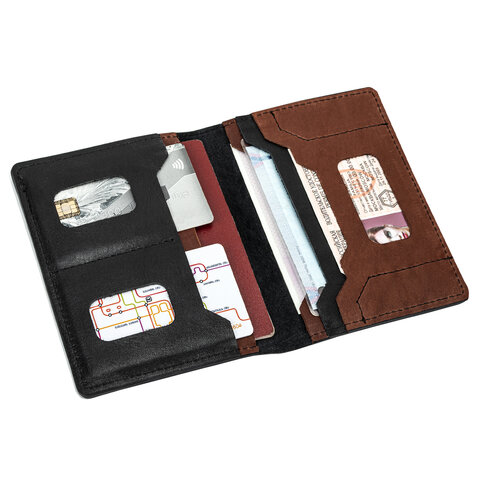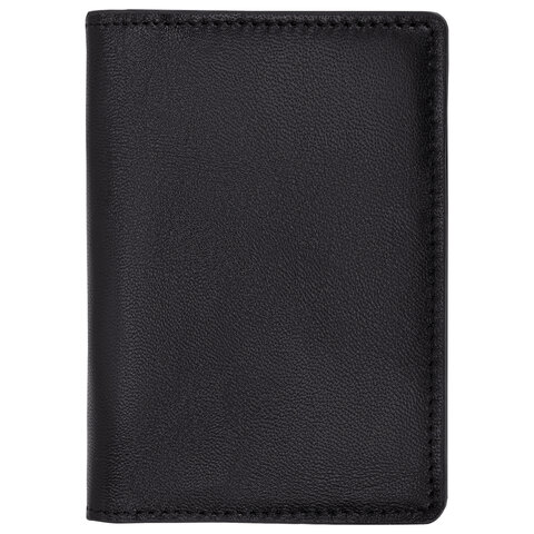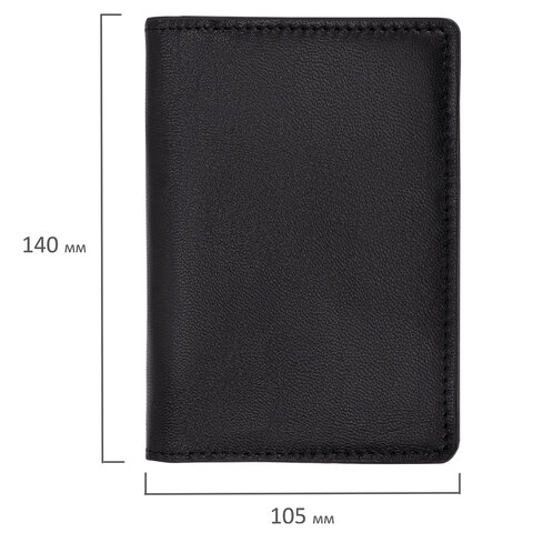 Обложка для паспорта и документов 7 в 1 натуральная кожа, без тиснения, черная, BRAUBERG, 238196