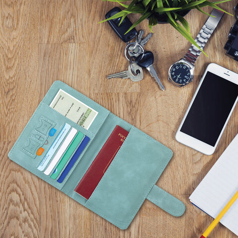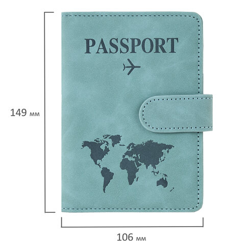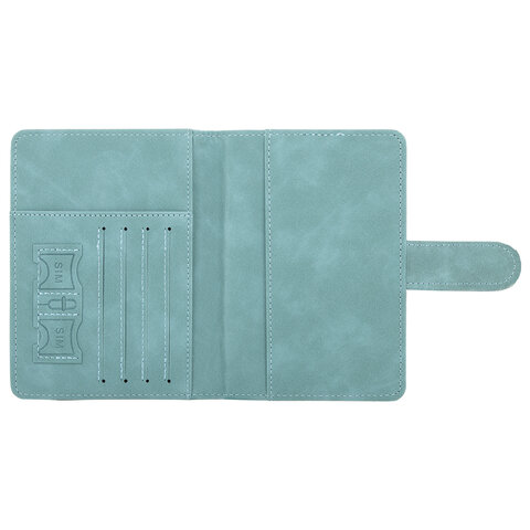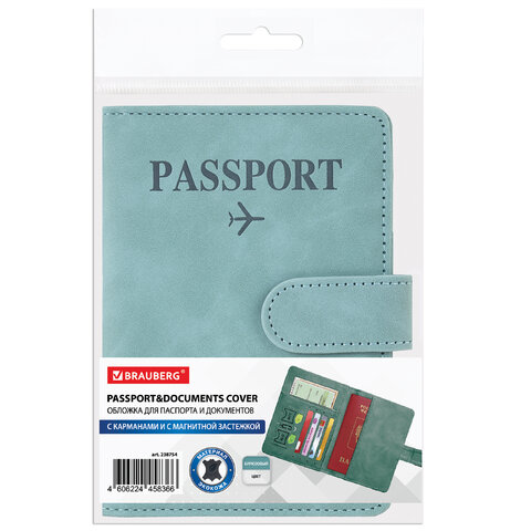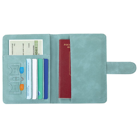 Обложка для паспорта и документов с защитой от считывания, 9 карманов, магнит, экокожа, бирюзовая, BRAUBERG, 238754