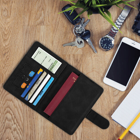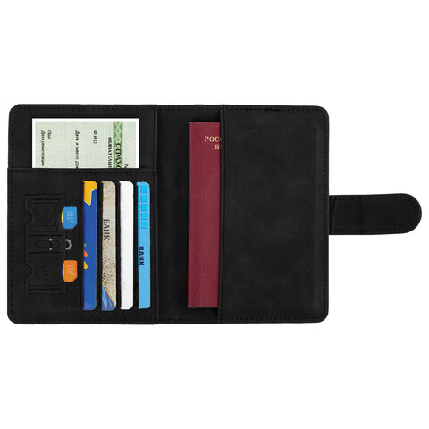 Обложка для паспорта и документов с защитой от считывания, 9 карманов, магнит, экокожа, черная, BRAUBERG, 238757