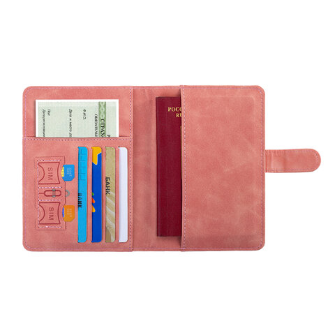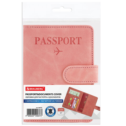 Обложка для паспорта и документов с защитой от считывания, 9 карманов, магнит, экокожа, розовая, BRAUBERG, 238755