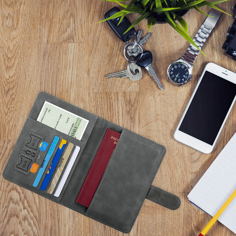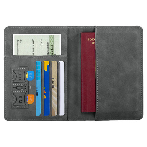 Обложка для паспорта и документов с защитой от считывания, 9 карманов, магнит, экокожа, серо-голубая, BRAUBERG, 238756