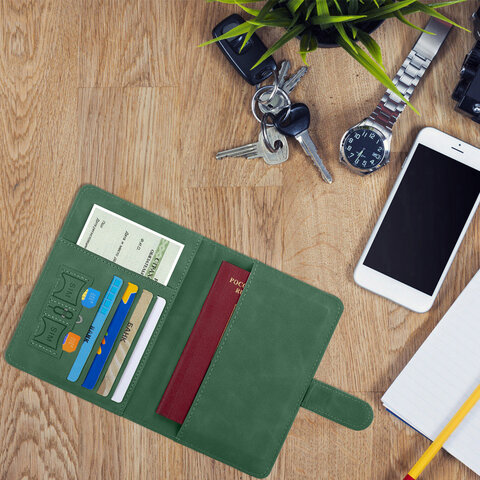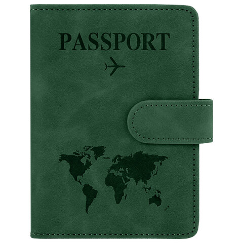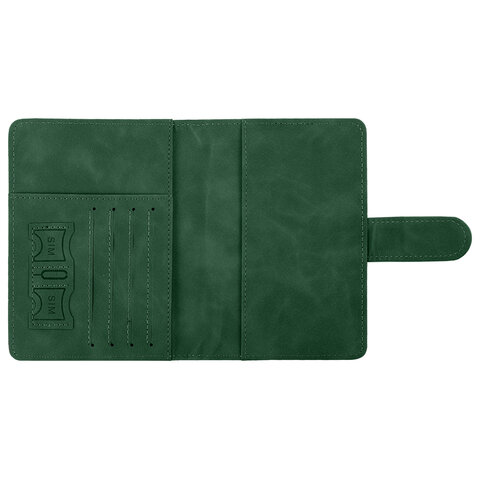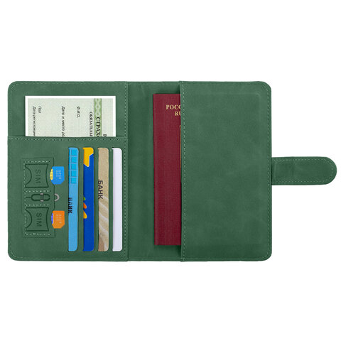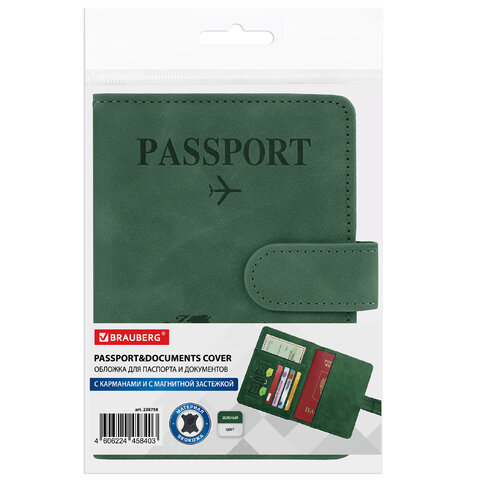 Обложка для паспорта и документов с защитой от считывания, 9 карманов, магнит, экокожа, зеленая, BRAUBERG, 238758