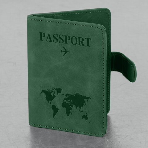 Тиснение "Passport", самолет, карта мира