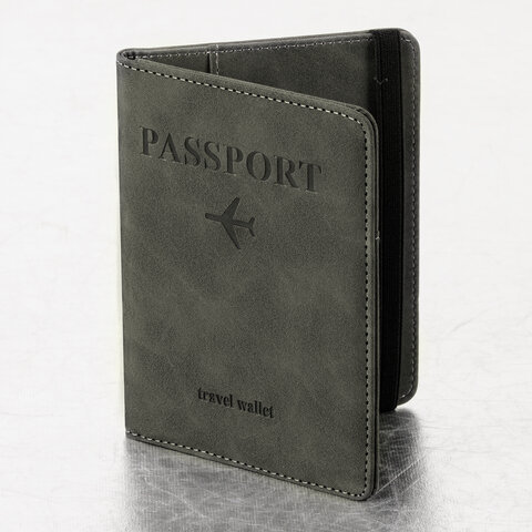 Обложка для паспорта и документов с защитой от считывания, 9 карманов, резинка, экокожа, графитовая, BRAUBERG, 238753