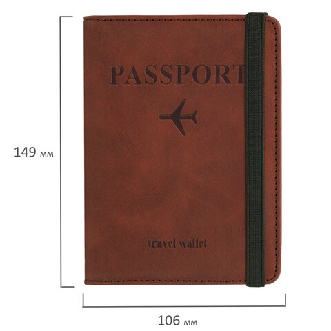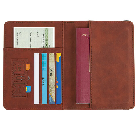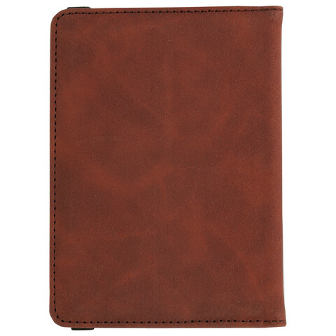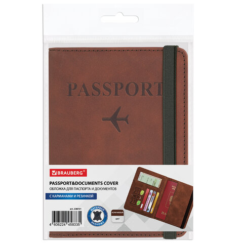 Обложка для паспорта и документов с защитой от считывания, 9 карманов, резинка, экокожа, коричневая, BRAUBERG, 238751