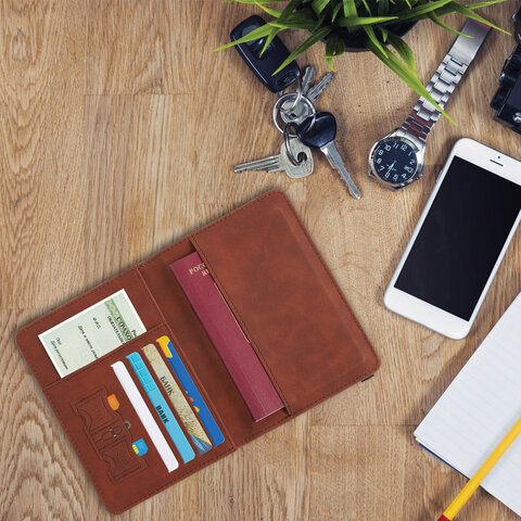 Тиснение "Passport", "travel wallet", самолет