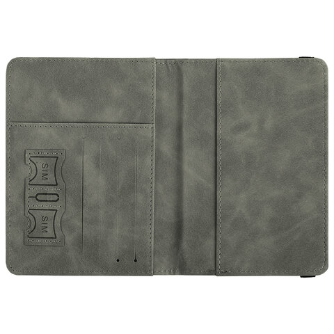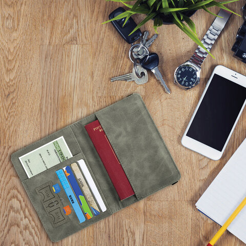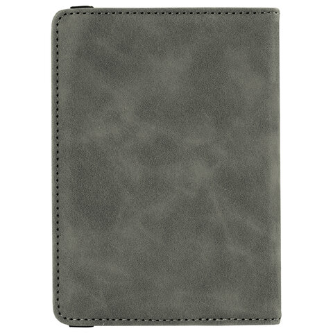 Обложка для паспорта и документов с защитой от считывания, 9 карманов, резинка, экокожа, серая, BRAUBERG, 238749