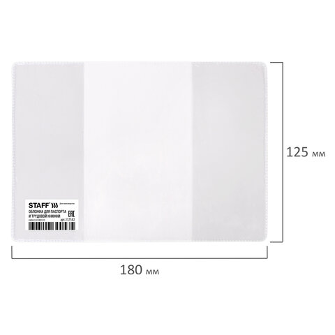 Обложка для паспорта и трудовой книжки, 90х125 мм, ПВХ, прозрачная, STAFF, 237582