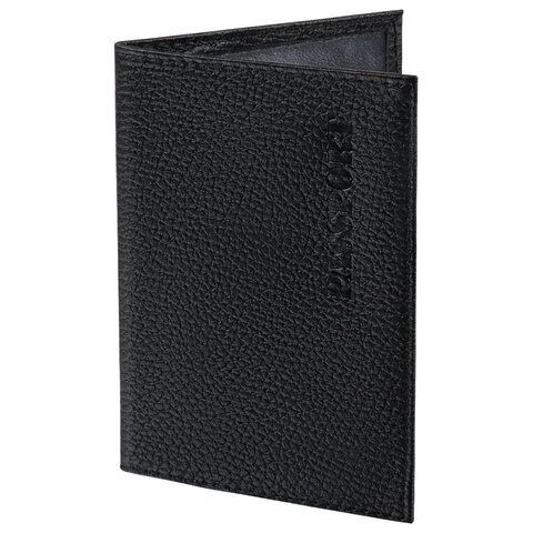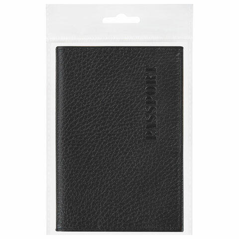 Обложка для паспорта натуральная кожа флоттер, "PASSPORT", кожаный уголок, черная, BRAUBERG, 238192