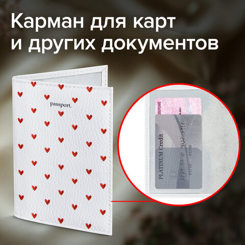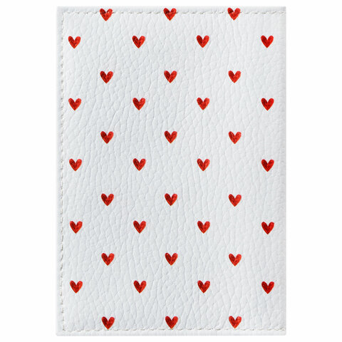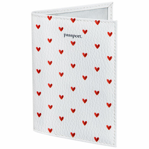 Обложка для паспорта натуральная кожа флоттер, принт "Сердечки", цвет белый, BRAUBERG, 238866