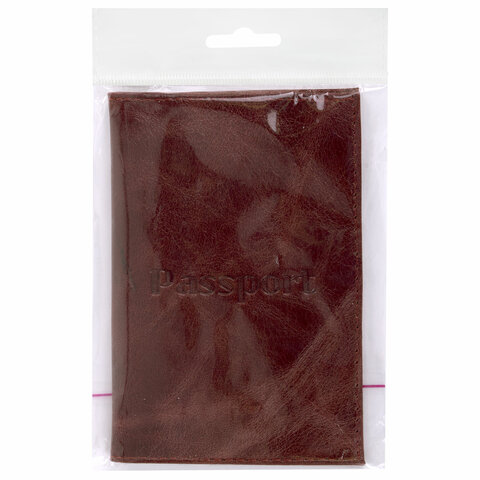 Обложка для паспорта натуральная кожа пулап, "Passport", кожаные карманы, коричневая, BRAUBERG, 238197