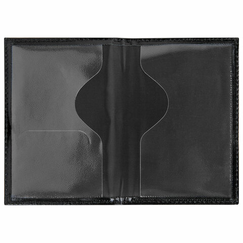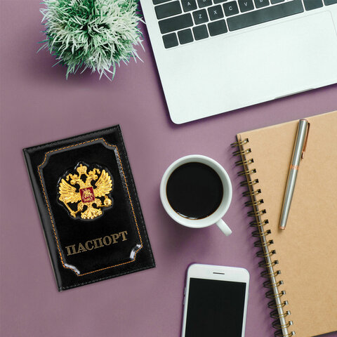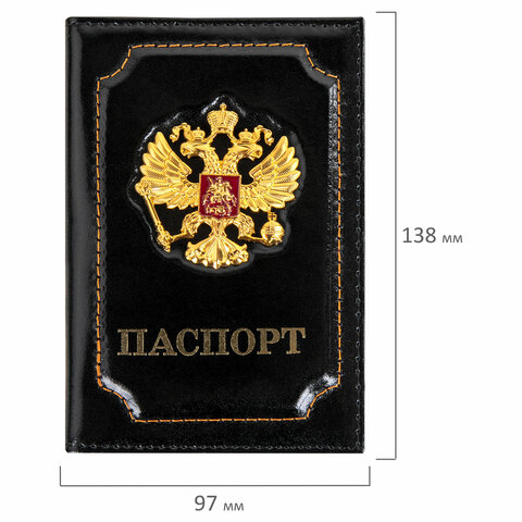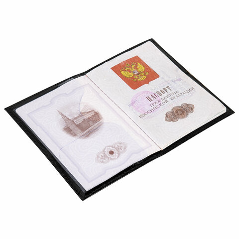 Обложка для паспорта натуральная кожа шик, 3D герб + тиснение "ПАСПОРТ", черная, BRAUBERG, 238201