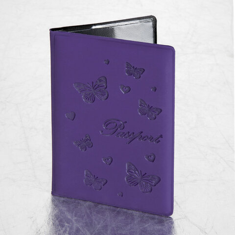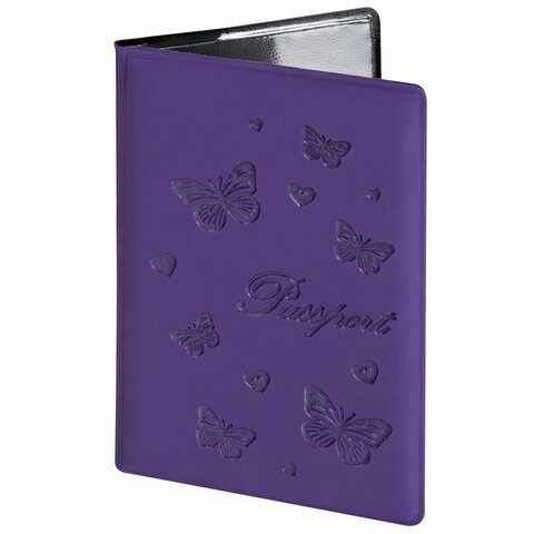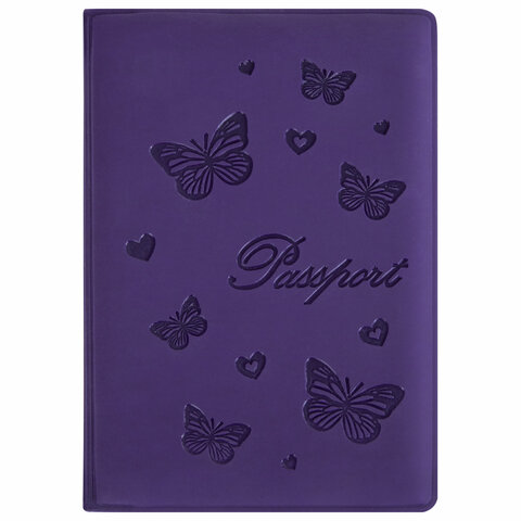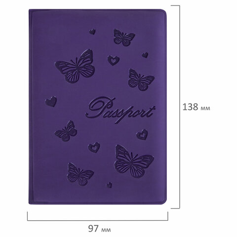 Обложка для паспорта STAFF, бархатный полиуретан, "Бабочки", фиолетовая, 237618