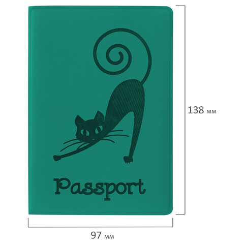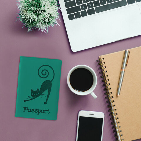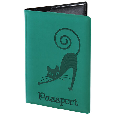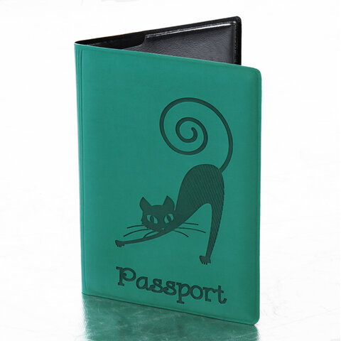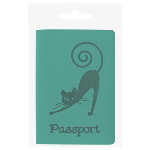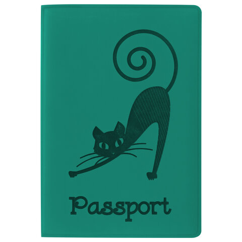 Обложка для паспорта, мягкий полиуретан, "Кошка", бирюзовая, STAFF, 237616