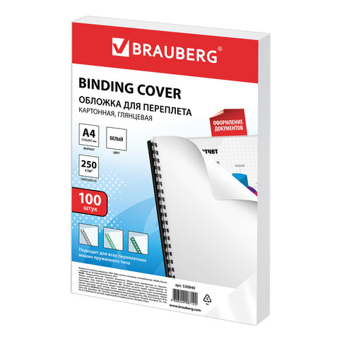 Обложки для переплета BRAUBERG придадут документам эстетичный внешний вид и защитят от повреждений. Предназначены для переплета документов брошюровщиком с помощью пластиковых и металлических пружин. Актуальны для создания деловых брошюр.