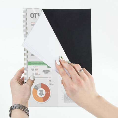 Обложки для переплета из плотного картона ОФИСМАГ предназначены для переплета документов брошюровщиком с помощью пластиковых и металлических пружин. Актуальны для создания деловых брошюр.