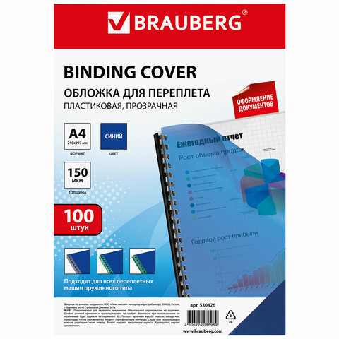 Пластиковые обложки BRAUBERG придадут документам эстетичный внешний вид и защитят от повреждений. Предназначены для переплета документов брошюровщиком с помощью пластиковых и металлических пружин.