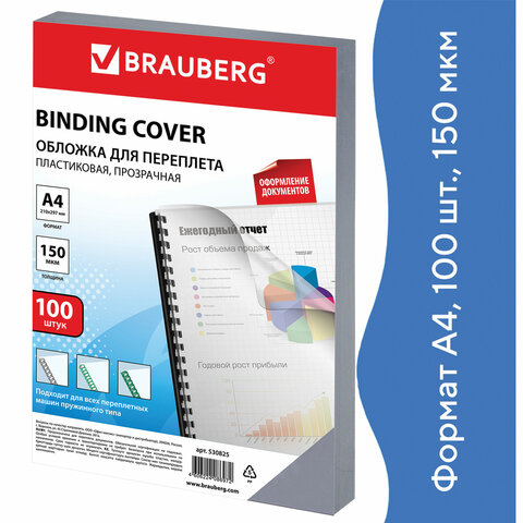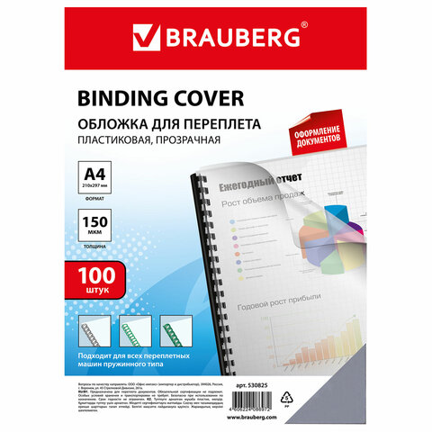 Пластиковые обложки BRAUBERG придадут документам эстетичный внешний вид и защитят от повреждений. Предназначены для переплета документов брошюровщиком с помощью пластиковых и металлических пружин.
