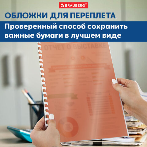 Пластиковые обложки BRAUBERG придадут документам эстетичный внешний вид и защитят от повреждений. Предназначены для переплета документов брошюровщиком с помощью пластиковых и металлических пружин.