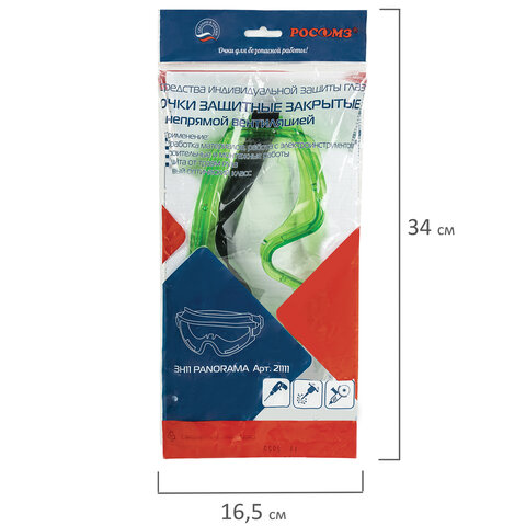 Очки защитные закрытые РОСОМЗ ЗН11 Panorama, прозрачные, непрямая вентиляция, поликарбонат, 21111