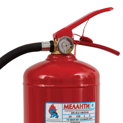 Огнетушитель порошковый ОП-4, АВСЕ(твердые в-ва, горючие жидкости и газы, электрооборудование до 1000В) закачной, в индивид. коробе, МЕЛАНТИ, ОП-4 АВСЕ
