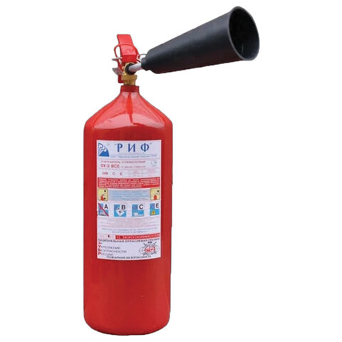 Огнетушитель углекислотный ОУ-3, ВСЕ (жидкие, газообразные, электрические), закачной, в индивидуальном коробе, РИФ