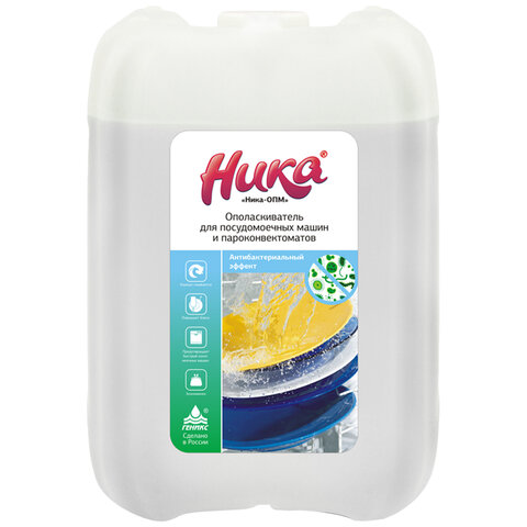 Ополаскиватель "НИКА-ОПМ" предназначен для ополаскивания посуды в посудомоечных машинах различного типа, для ополаскивания оборотной тары (в том числе стеклянной), оборудования и инвентаря.