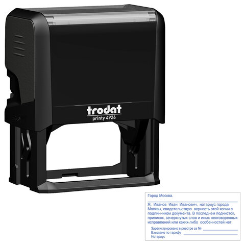 Оснастка для штампа, оттиск 75х38 мм, синий, TRODAT 4926 P4, корпус черный, подушка, 174048