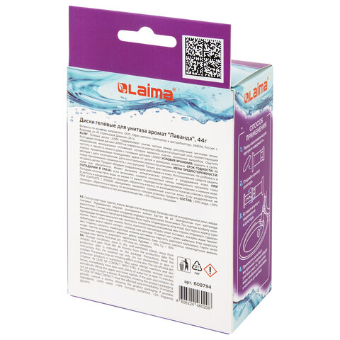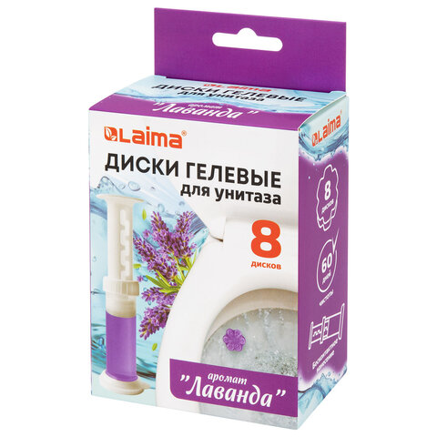 Диски гелевые, освежитель и очиститель для унитаза / писсуара, 8 дисков 44 г, LAIMA, "Лаванда", шприц, 609794