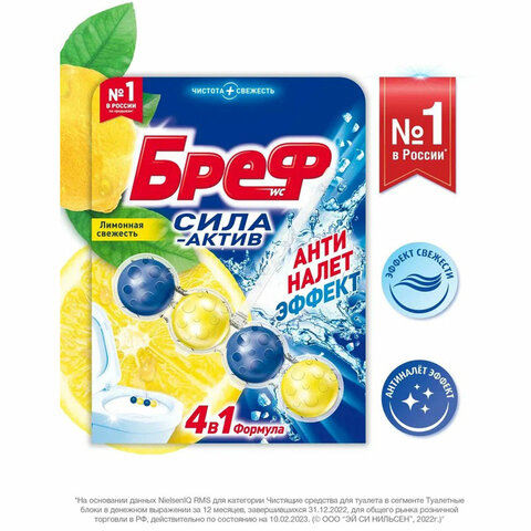 Освежитель WC (для туалета) твердый 50 г БРЕФ Сила-Актив "Лимонная свежесть", 25289, 2312463
