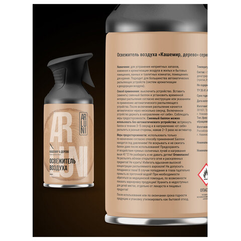 Освежитель воздуха 250мл ARLUNI "Кашемир и дерево" с триггером – это эффективный аэрозольный ароматизатор для помещений
