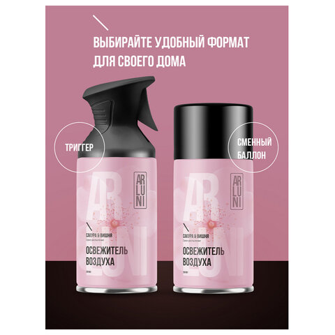 Освежитель воздуха 250мл ARLUNI "Сакура и вишня" с триггером – это эффективный аэрозольный ароматизатор для помещений.