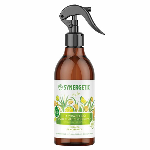 Освежитель воздуха 380 мл SYNERGETIC "Имбирь и лемонграсс", биоразлагаемый, 900004
